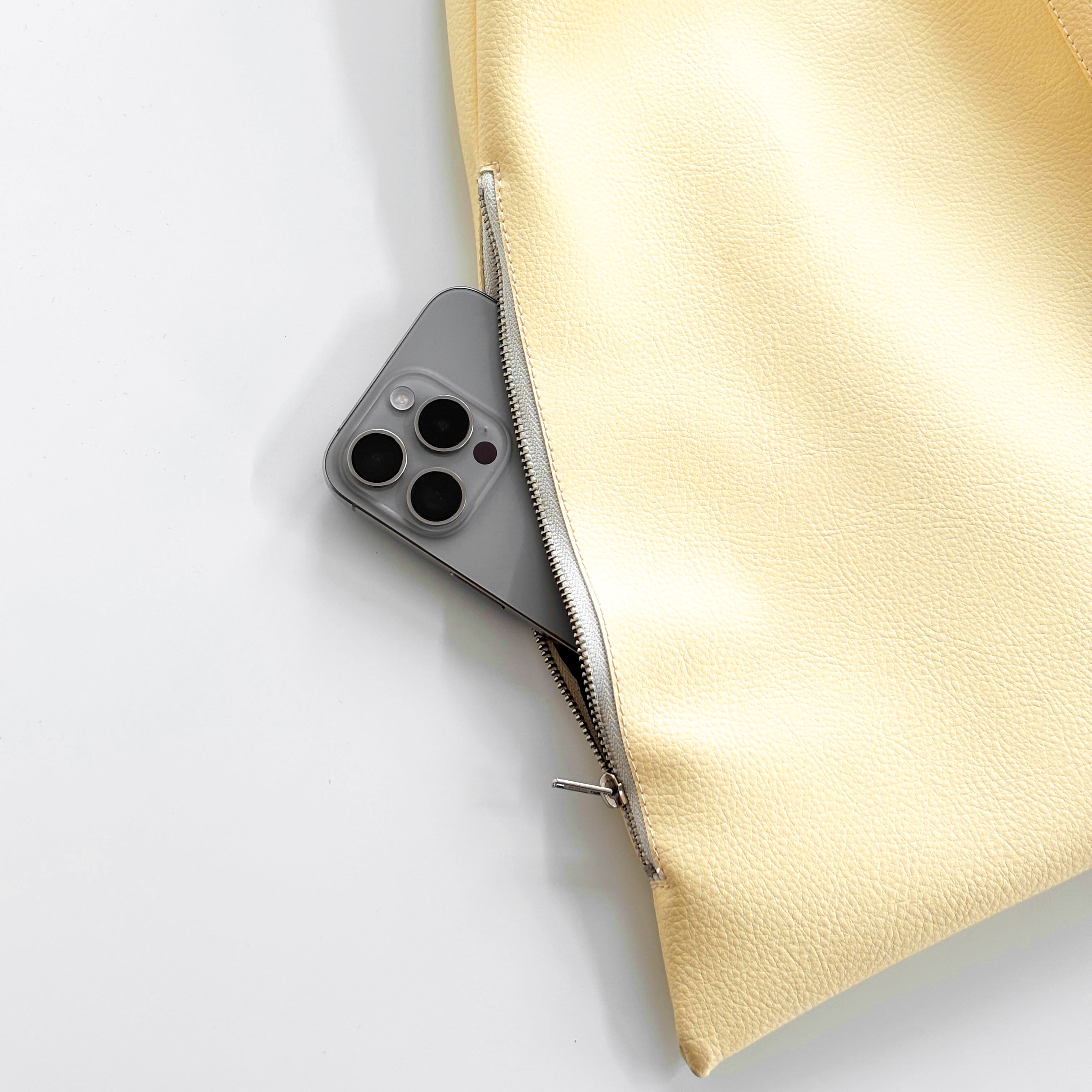 - 内側にはサイズの異なる小物収納用のポケット2つを配置。